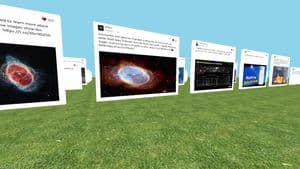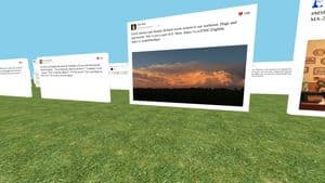 This project demonstrates a 3D rendering of a Twitter timeline implemented with three.js. Users can navigate the tweets, which are organized based on their chronological order and like counts. The visualization also features a concentrated area of discussion and engagement around the most recent tweet with the highest number of likes.
